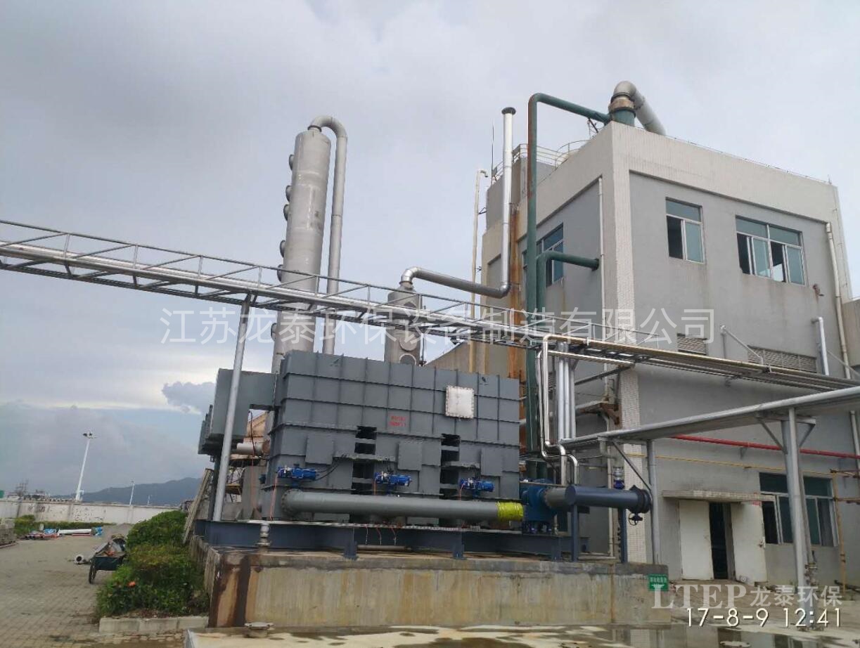 為徹底解決生產(chǎn)尾氣合格排放問題,珠海市盈潤環(huán)保科技有限公司經(jīng)與多家環(huán)保工程公司交流,篩選出針對公司生產(chǎn)裝置尾氣特點的“蓄熱式氧化(RTO)+鈉堿法脫硫”工藝來處理尾氣中揮發(fā)性有機氣體和含硫有機氣體。采用上述工藝,在RTO處理單元,所有VOC都被燒成CO2,有機硫被氧化成SO2;在鈉堿法脫硫處理單元,SO2被氫氧化鈉溶液吸收脫除。